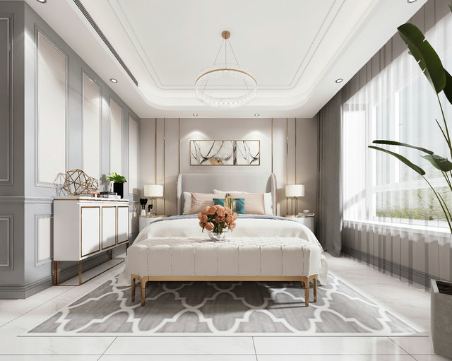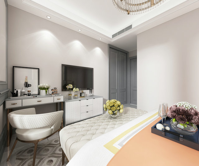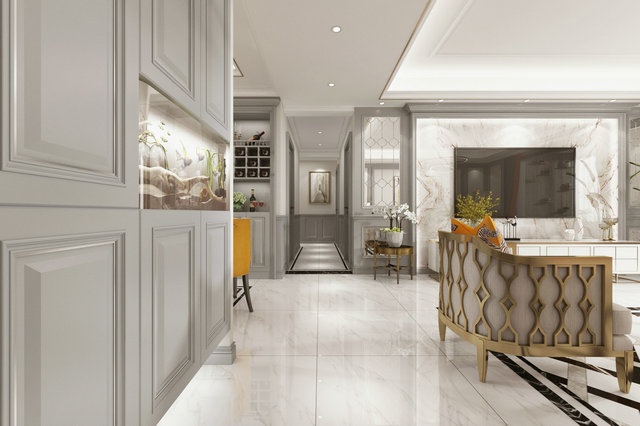 本案設計業主為四口之間老人也會偶爾來住需要保留四個臥室,我沒有對墻體有太大的改動,只有入戶處預留了鞋帽柜的位置,業主喜歡美式輕奢風格,所以在色調上我選用了暖灰色調,整體風格以美式為主。