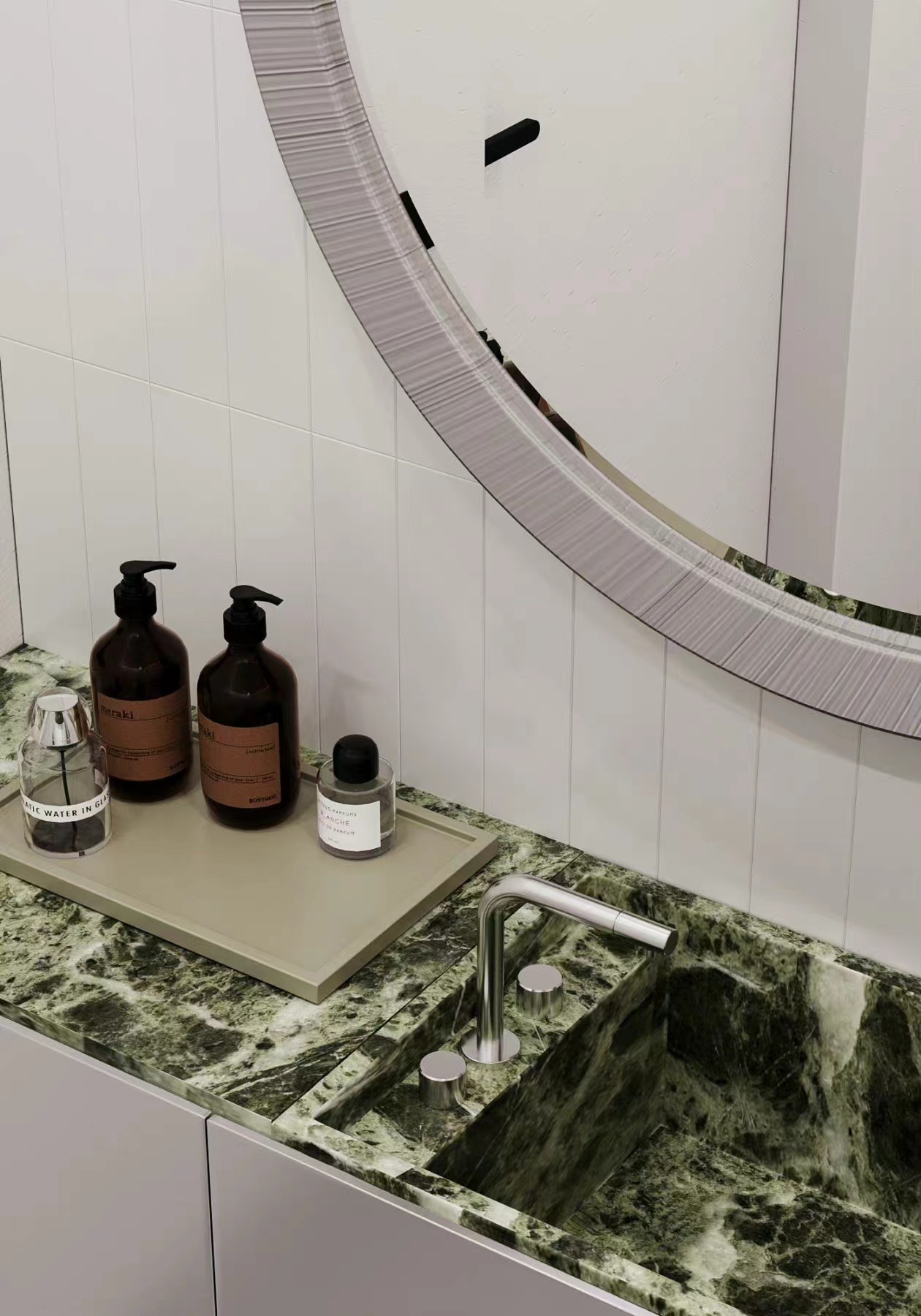 人生的起點不止是降生的那一刻,人生就是不斷地重復起點去往終點的過程。每個人的起點也許不同,但卻相通。家是起點,亦是終點。從大面積的落地窗向外望去,莫愁湖的美景盡收眼底。透明玻璃材質落地窗極力模糊了邊界認知,讓室內與室外處于一種曖昧含蓄的關系、變化而又和諧。