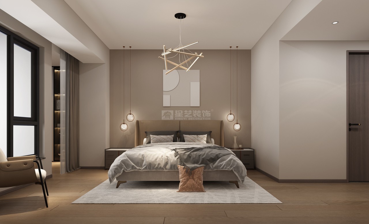 設計理念: 當陽光透過紗幔折射在空間內,婆娑的影像在空間內盈盈舞動,從此光便有了形態。 設計師在素凈的空間內,將不同形態的光影疊加交錯,優雅嫻靜的氛圍被固定在居家環境中,這一室浪漫的基調正在徐徐展開。