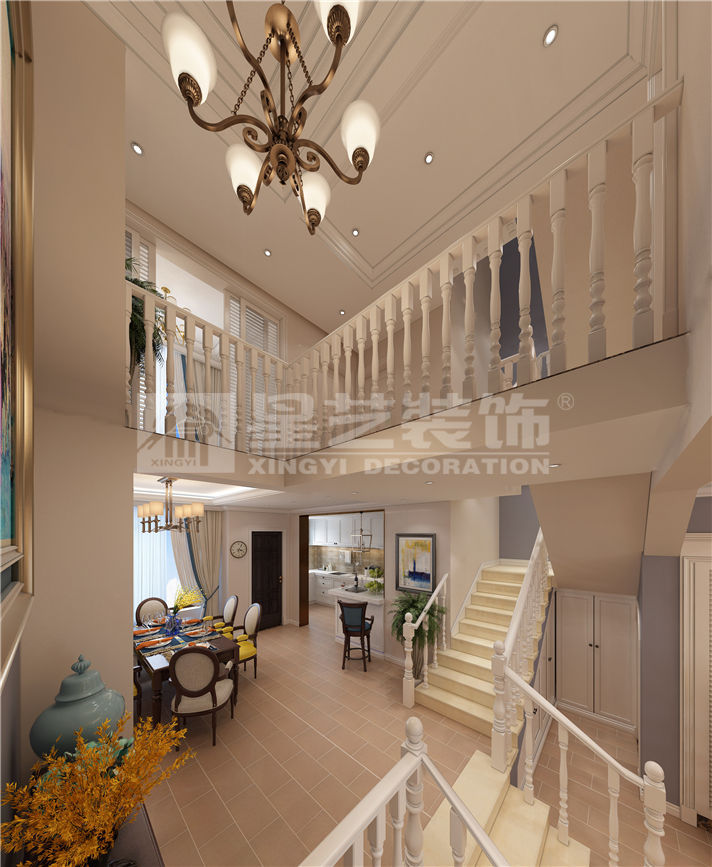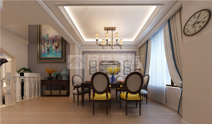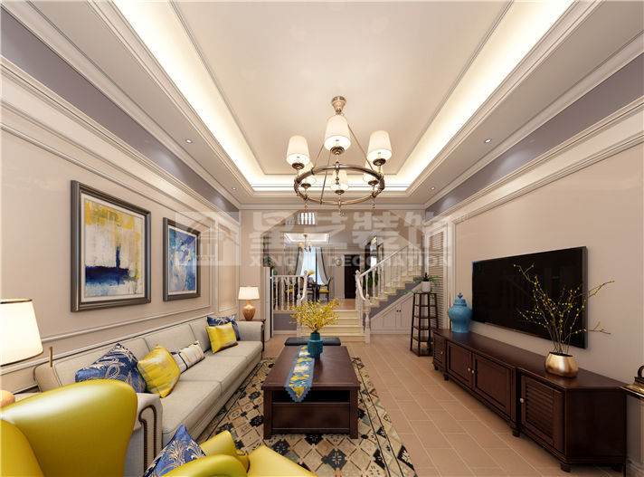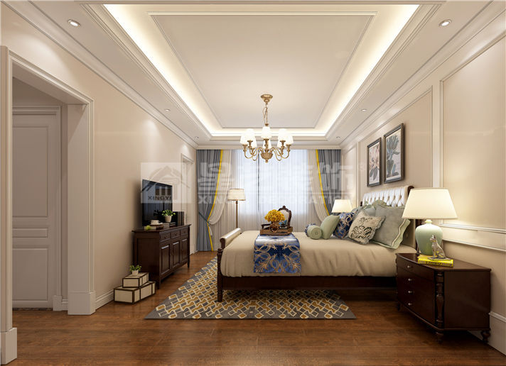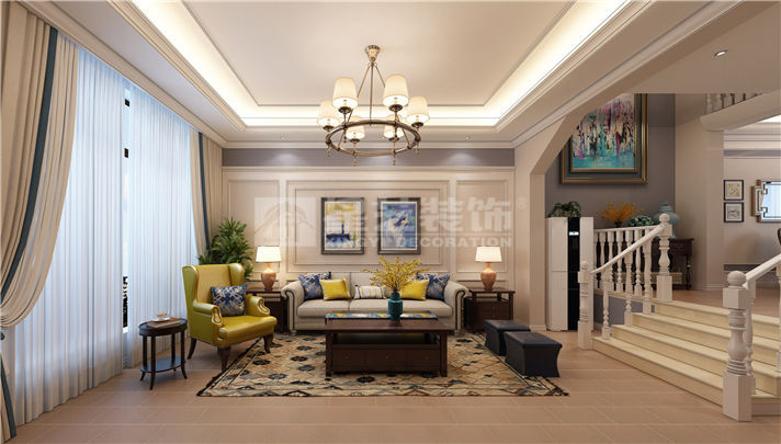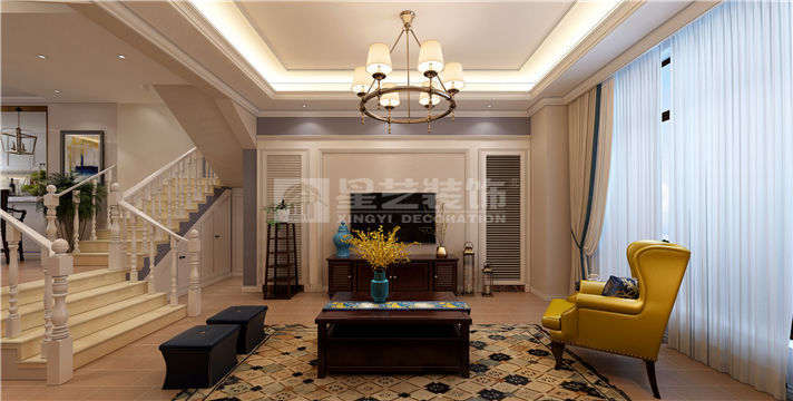 本案在家具和配飾上基本延續了現代美式風格的特點,單純,自然,充滿個性化。家具和配飾是傳統美式的縮小版,但仍然采用實木家具,減少雕花,弧形等裝飾,采用直線,純色,粗狂的風格,更能體現個性化,避免千篇一律的風格。