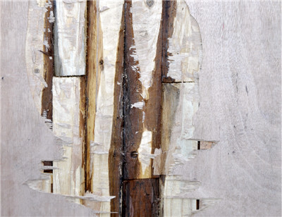 ■ 基材原料多為經濟型速成林木材,如馬六甲、松木、桉木等,材質松馳、握釘力差、異味較重、易空鼓、起翹等,芯木條材料質地松馳,并誘蟲蟻;