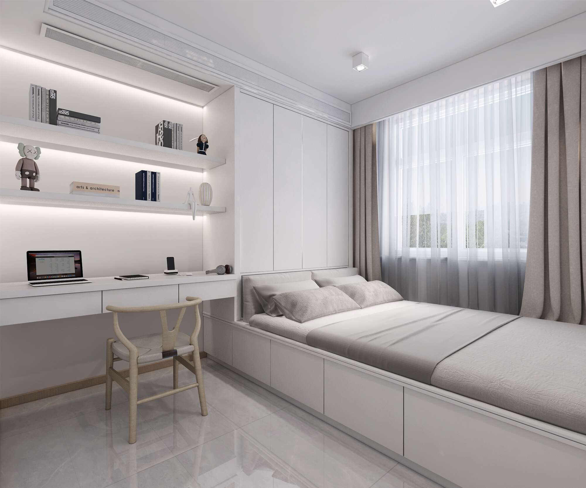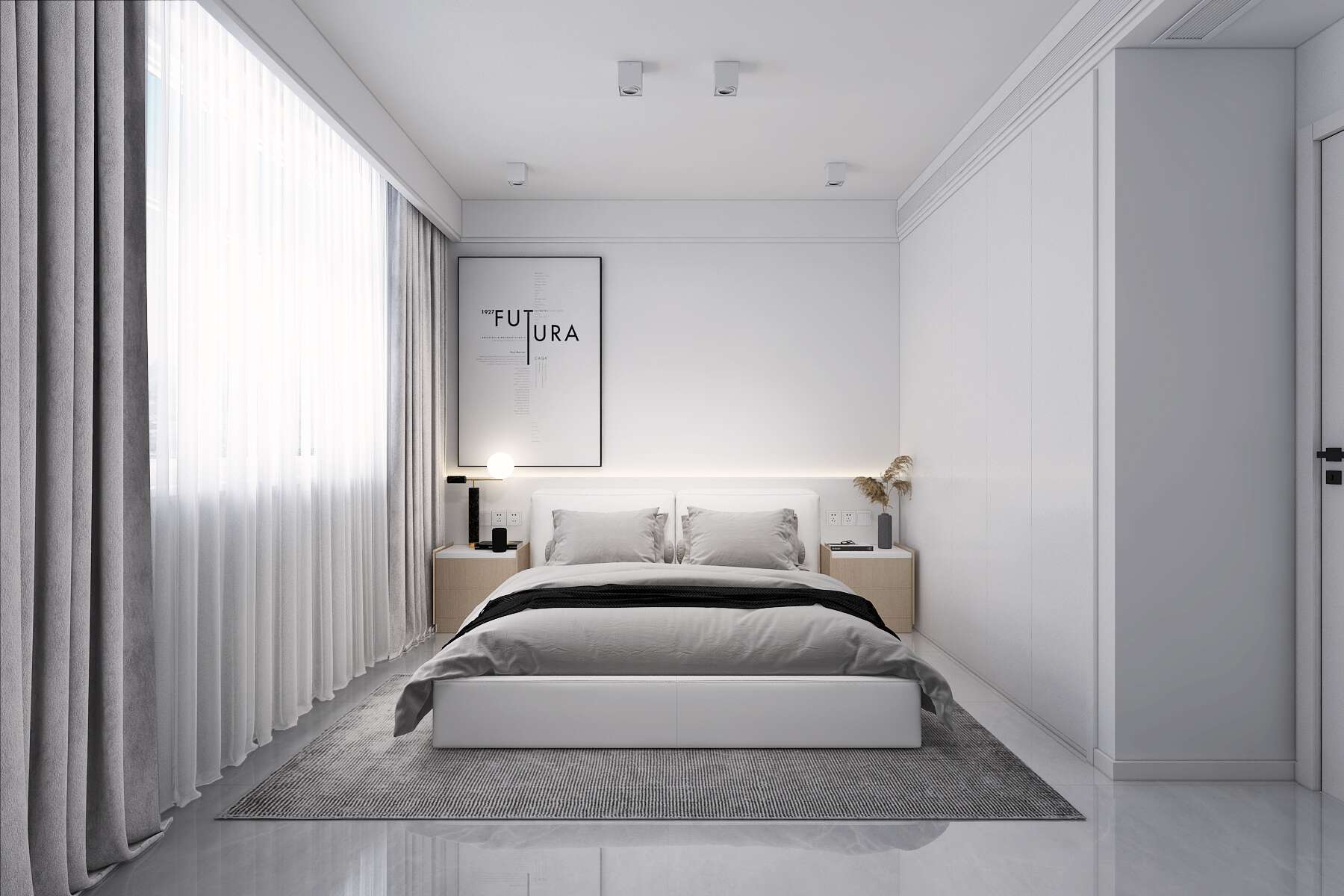 窗簾盒旁邊留一個裝電動窗簾,如果您家后期要想改成電動窗簾,這邊沒有插座就要走明線,會影響整體美觀。